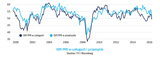 Wyczekiwane przez wszystkich dane z amerykańskiego rynku pracy okazały się słabsze od oczekiwań. Zatrudnienie poza rolnictwem, NFP, wzrosło o 151 tys. wobec konsensu 180 tys. Stopa bezrobocia, wbrew oczekiwaniom nie spadła do 4,8%, tylko utrzymała się na poziomie 4,9%. Kolejne dane okazały się jeszcze bardziej rozczarowujące. Wskaźnik wyprzedzający koniunktury ISM w usługach spadł do 51,4 z 55,5 miesiąc wcześniej i okazał się niższy od oczekiwań – konsens prognoz analityków wynosił 54,9. To już nie przelewki, bo tak słabego odczytu nie było od lutego 2010 roku. Wskaźnik ISM dla przemysłu spadł w sierpniu do 49,4, wobec oczekiwanych 52.