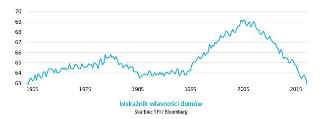 Jednak sytuacja na rynku pracy czy koniunktura w przemyśle to niejedyny czynnik, na który uwagę musi zwracać Fed. Trochę zapomina się o inflacji, zakładając, że z uwagi na szalejącą globalną deflację problem nie istnieje. Rzeczywiście, inflacja konsumentów w USA wynosi 0,8% r/r, co jest znacznie poniżej celu inflacyjnego Fed wynoszącego 2%. Jeżeli jednak popatrzymy na wzrost cen oczyszczonych z energii i żywności, to okaże się, że wynosi on 2,2% rocznie. Szeroko rozumiana energia staniała w tym czasie o 10,7%, co jest zasługą przede wszystkim paliw płynnych – cena benzyny była w lipcu o 19,9% tańsza niż rok wcześniej. Stabilizacja cen ropy przełoży się niedługo na przyspieszenie inflacji. Już teraz inflacja bez cen energii wynosi 1,9%. Na przykład usługi związane z mieszkaniem, przede wszystkim koszty najmu, rosną w tempie przekraczającym 3% r/r. To ważna pozycja, bo jej waga w indeksie CPIU wynosi 1/3. Wraz ze wzrostem cen domów, który obserwujemy od końca kryzysu, ale także z uwagi na zmiany kulturowe (sharing economy), będzie spadał wskaźnik własności domów (czyli procent gospodarstw domowych, który mieszka na swoim) i rosło zapotrzebowanie na wynajem.